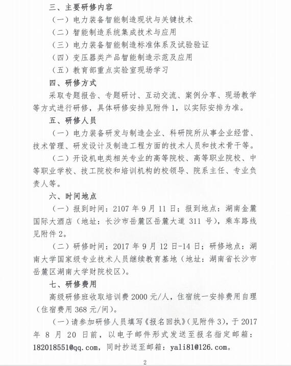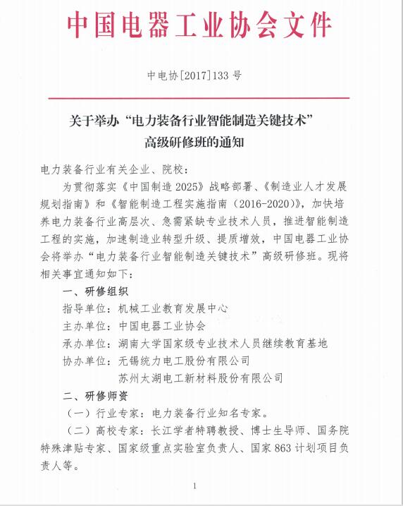 关于举办"电力装备行业智能制造关键技术"高级研修班的通知