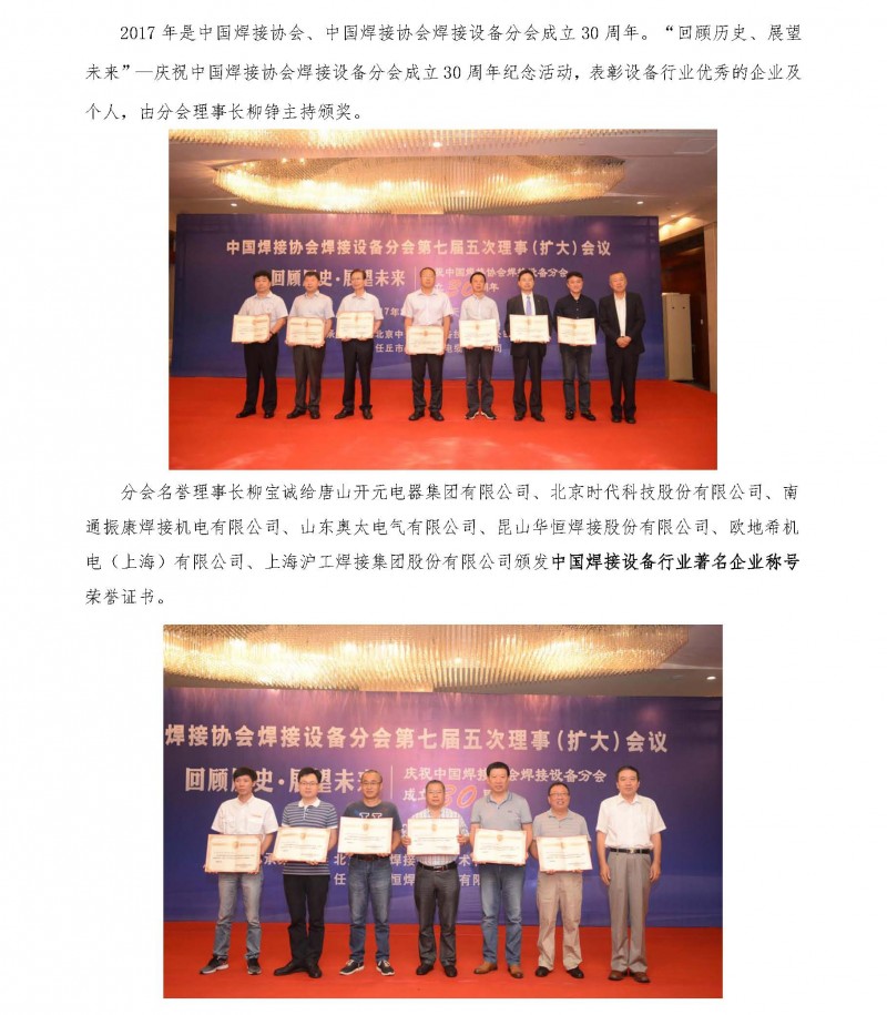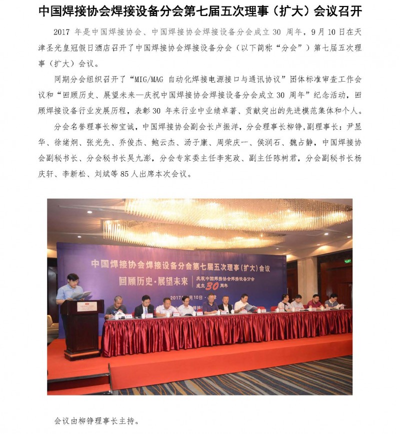 中国焊接协会焊接设备分会第七届五次理事(扩大)会议召开