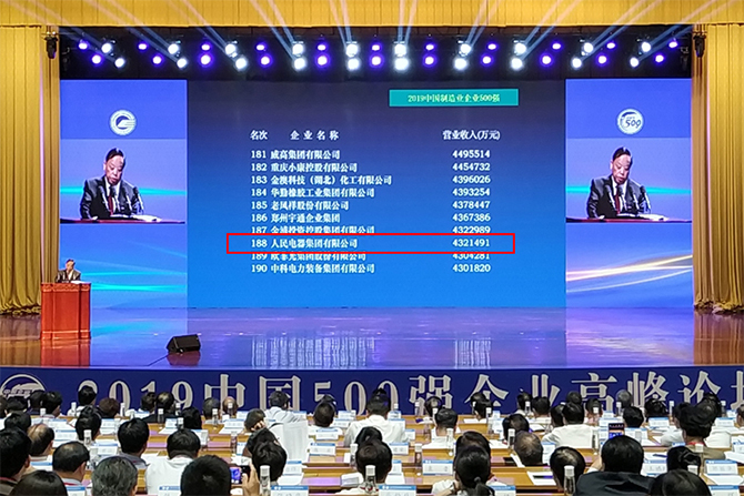 昨日,由中国企业联合会、中国企业家协会主办的“2019中国500强企业高峰论坛”在济南举行。会上发布了2019中国企业500强、2019中国制造业企业500强、2019中国服务业企业500强、2019中国100大跨国公司、2019中国战略性新兴产业领军企业100强等榜单。其中,在“2019中国企业500强”“2019中国制造业企业500强”榜单中,人民电器集团以432.1491亿元荣登中国企业500强、中国制造业企业500强。据悉,这是人民电器集团自2003年以来连续17年荣登“两榜”榜单。