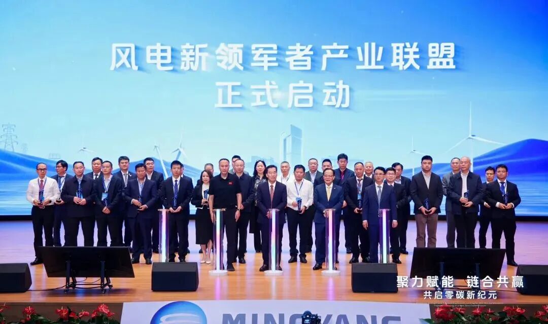 大会现场,明阳集团还与战略供应商代表进行战略协议签约仪式,并联合三十家战略供应商成立风电新领军者产业联盟,为创新技术和产品的产业化应用奠定坚实基础。