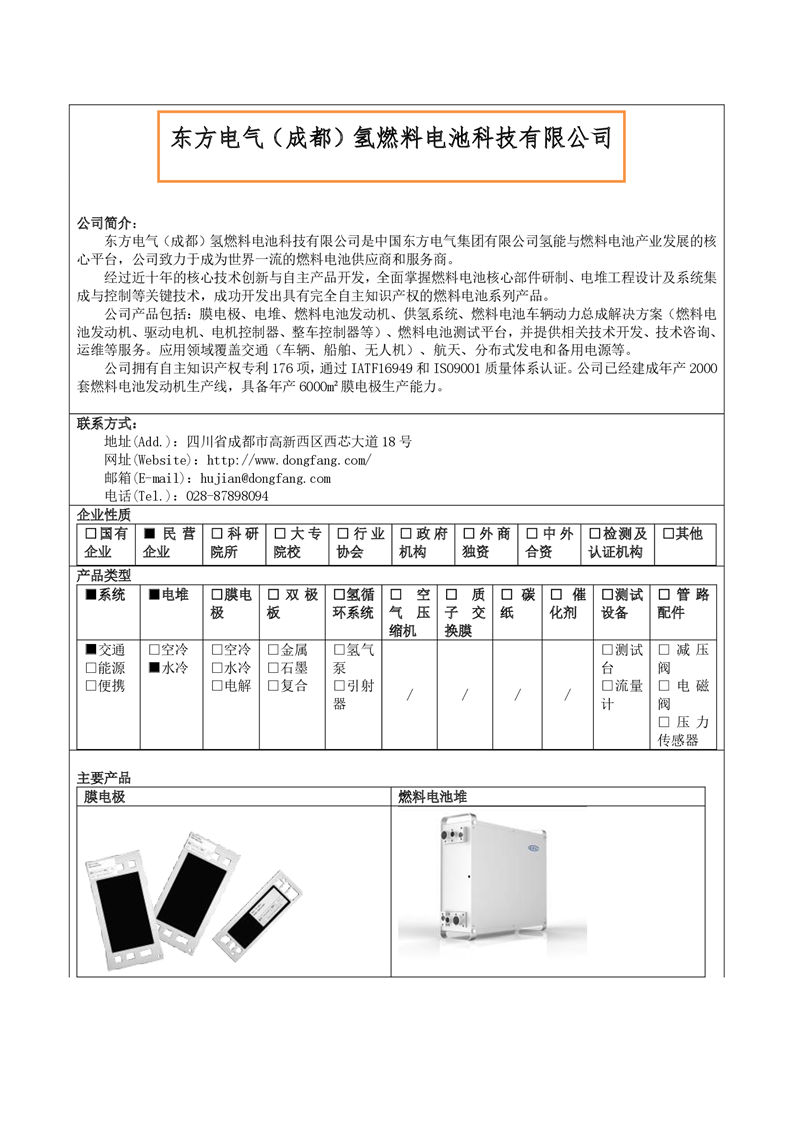 [燃料电池选型]-东方电气(成都)氢燃料电池科技有限公司