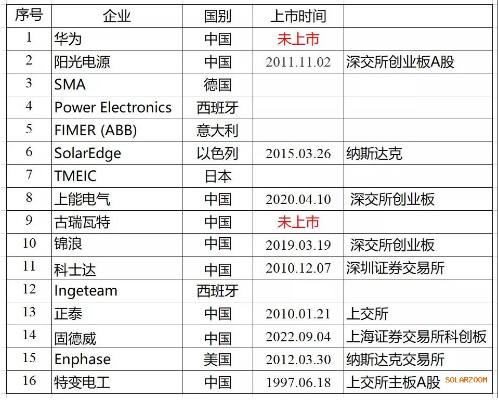 根据中国光伏行业协会的统计数据,2019年全球销量前16的逆变器企业,只有2家非上市公司,而行业龙头——华为,就是其中的一家。如下图所示。
