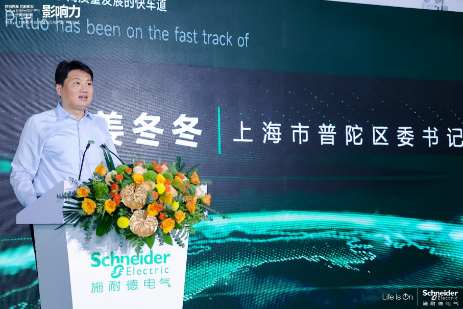 活动现场,上海市普陀区委书记姜冬冬在致辞中表示:“近年来,普陀区主动服务上海‘五个中心’建设大局,同时‘中华武数’科创布局加快构建、四大重点产业壮大成势,均为企业发展提供了广阔的空间。我们期待,以施耐德电气为代表的企业,在未来能够持续发挥‘龙头’和‘链主’作用,促进产业链上下游创新主体的深入交流、交往、交融,加快全面创新,持续推动各类生产要素在普陀区的配置,共同打造‘中华武数’科创布局。”